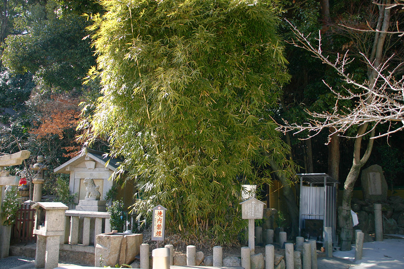 釣竿を埋めたところ竹が生えたという「神功皇后釣竿竹」が「須磨寺」(兵庫県)に,「神功皇后釣竿の竹」が「生田神社」(兵庫県)に,また「玉島神社」(佐賀県)にもあります。 しかし,『東松浦郡史』や『唐津松浦潟』では違った表現となっています。 玉島川の鮎に限り唇金色と言っている様です。 『東松浦郡史』には下記の様にあります。 「金の素針を入れ給ひ鮎を釣り給ふに,忽ちかゝれり,此の素針にて釣り給ひしことは神秘なりとかや,釣竿は攝州播州の堺なる幹竹といふ竹なり,今に生田須磨邊に釣竿竹とてあり,此の金の素鈎にかゝりし因縁にて此の玉島川の鮎にかぎり唇金色なりと謂ひ傳ふ。其の節皇后の上り給ひし石を,紫臺石といふ,今は川底に埋みて見えず,川岸の上に玉島山といふ所あり,則ち皇后の宮を安置し奉り聖母大明神と称し奉るなり。また干珠満珠の山とて二あり,此の山の隣るところに加茂某といふ隠者あり,常に語りていふ,我住所の前に細き土橋あり,溝川なり,前は往還なり,適々大地震と外々騒ぐことあるとき,此の玉島山には地震を知らず,故に此の家に生れたるもの地震を知らずと,其の天理如何と笑談せり,これも御神徳なるべし。」 『唐津松浦潟』では下記の様にあります。 「當時釣竿に用ひ給ひし竹は此の丘上に取りしものにて,今猶其の竹種杜 域内に一叢となつて残ってゐる。又摂州播州の境にある韓竹といへるものも其種顛で,生田,須磨の地方にては釣竿竹として用ひられ てゐるといふ。此の川の鮎の唇金色なるは,金の針を鉤げて鉤となし釣り給ひしによるとか,仲々理屈をつけたものである。 皇后の立ち給ひし石を紫臺石といふ。今は河底に没して見江ず。」
